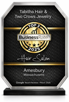 Tabitha sees beauty in the world everywhere she looks, and in doing so, creates her own way of making things beautiful, as well as helping others to see and feel beauty is her little gift back to the world. Recognized by Business Rate in 2025 for 'Top 3 of Amesbury Awards', Tabitha Hair & Two Crows Jewelry is TOP HAIR SALON IN AMESBURY for 2025!